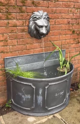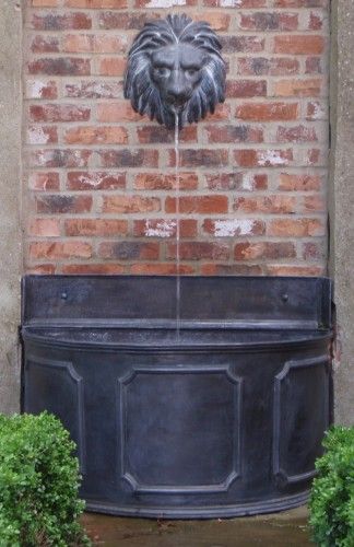 Large half round cistern and lion head water feature, the mask can be easily changed to any from our selection.